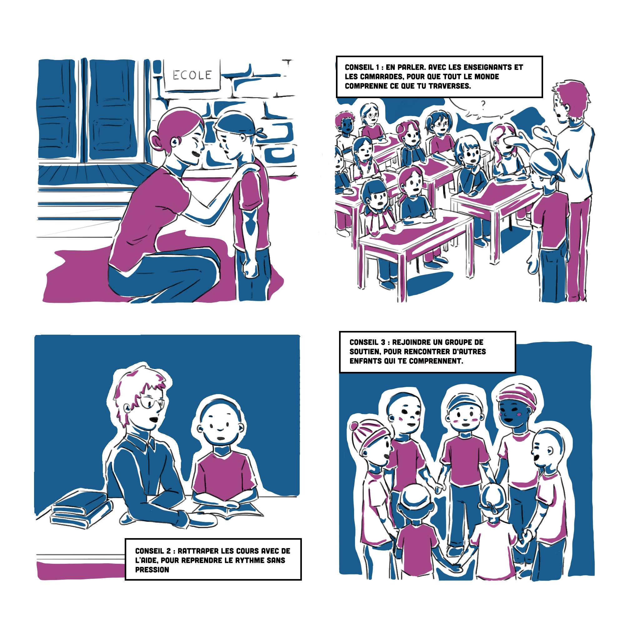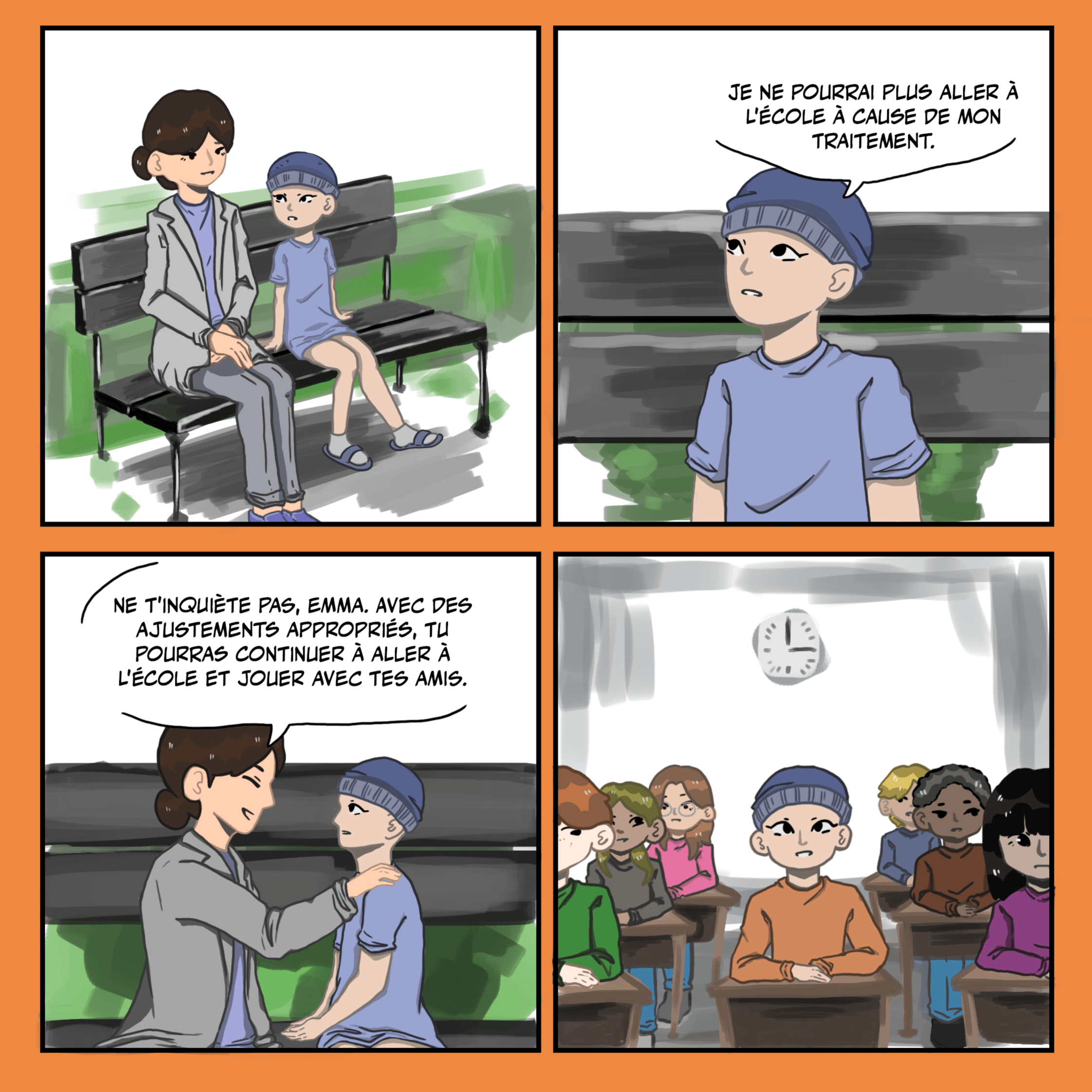 Comics created for the Enfants Cancers Santé Federation to raise awareness about childhood cancer in a fun and engaging way for children.